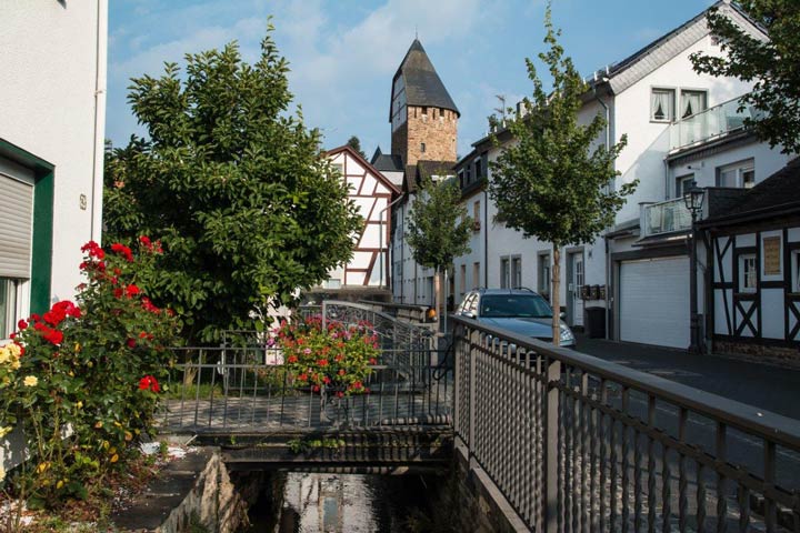 Die mittelalterliche Stadtmauer von Ahrweiler mit Wallgraben, Toren und Türmen aus dem 13. Jh. ist vollständig erhalten. Malerische Fachwerkhäuser können stressfrei in der autofreien Altstadt besichtigt werden, darunter das Wolffsche Haus aus dem Jahr 1621. Der Marktplatz wird durch die erste frühgotische Hallenkirche des Rheinlands, St. Laurentius (ab 1269), und das alte Rathaus (Spätrokoko, 1778) geprägt.