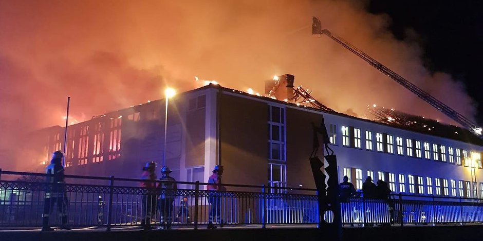 Wasser steht auf dem Boden, tropft von der Decke. Ein Großbrand hat in der Nacht zum Freitag im Städtischen Johannes-Sturmius-Gymnasium gewütet. Der Dachstuhl des mehr als 40 Meter langen Altbaus, der direkt an der B265 liegt, ist zum Raub der Flammen geworden. Die Aula ist als solche nicht mehr erkennbar, die Stadtbibliothek durch Löschwasser massiv beschädigt. Etwa ein Viertel der Fläche der Schule ist betroffen, der Schaden geht in die Millionen.