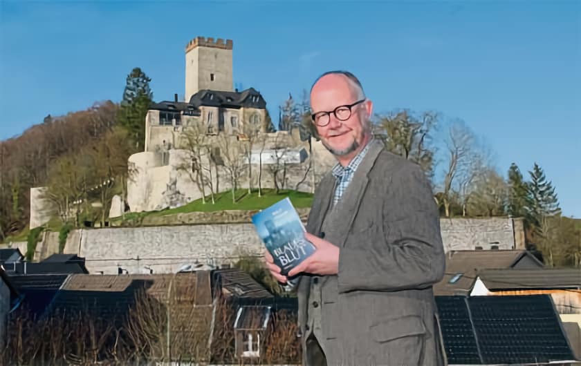 Die Fiktion jedenfalls ist Anlass für den Einstieg Herbie Feldmanns ins Geschehen. Typisch Kramp ist, dass das Vorbild des alten Gemäuers im Krimi ein Reales ist. „Ich hätte einfach eine Burg planen können, mein Vater war Architekt, das hätte ich hingekriegt“, so der Autor. Aber dann fand er, was er suchte, im wenige Kilometer von seinem Krimiverlagssitz in Hillesheim entfernten Örtchen Kerpen: Der dortige Raubrittersitz, der im 20. Jahrhundert lange Landschulheim war, gehört seit sechs Jahren einem mit Kramp befreundeten Ehepaar, das ihn gerade renoviert. Ein Gemäuer wie aus dem Bilderbuch, das jetzt das Cover von „Blaues Blut“ ziert.